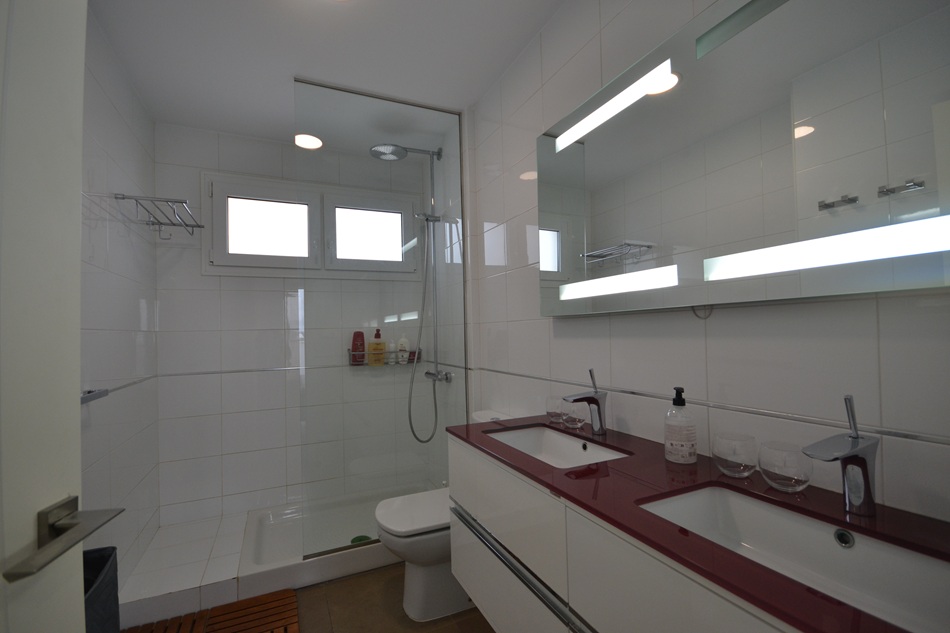 Entre todas las comodidades mencionadas, está el equipamiento en toda la casa de ventanas automáticas. Puertas de las terrazas abatibles. Toldo automático en la terraza principal. Armarios empotrados en todos los dormitorios y en el salón. Aire acondicionado en el salón y en todos los dormitorios. Placas solares.