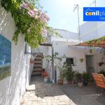 A través de un acogedor recibidor, tenemos el acceso a un espacioso patio cuidado con cariño con flores, un pozo, y con acceso a las 2 casas y a la zona trasera de la finca. En total cuenta con 200m2.